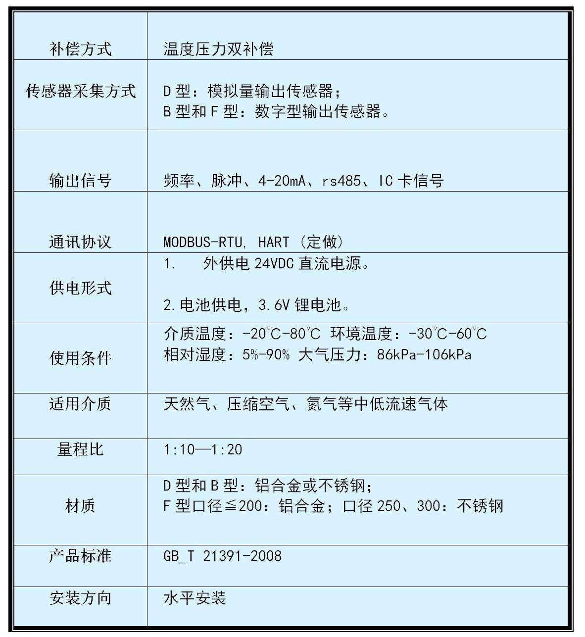 D型/ B型適合計(jì)量天然氣、氮?dú)狻?氫氣、壓縮空氣等潔凈的中低流速氣體。F型適合貿(mào)易計(jì)量天然氣、氮?dú)狻錃?、壓縮空氣等潔凈 的中低流速氣體