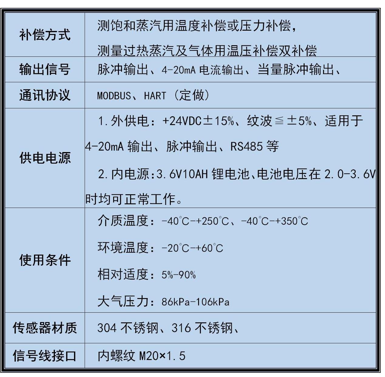 1. 渦街流量計(jì)具體適合工況參數(shù)見渦街流量計(jì)說明書